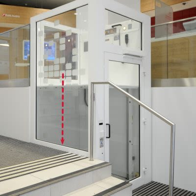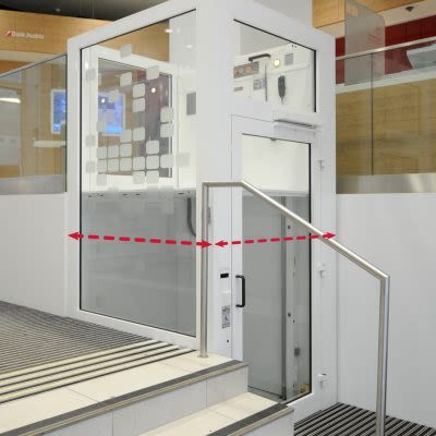 Due to a sophisticated, hydraulic scissor lift system this platform lift GHB50 can load up to 2000 kg at a height of a maximum of 3 m. This system can be easily integrated into a wall- or glass shaft. Because of the high carrying capacity it is possible to integrate a lift door on the platform lift. This option has various advantages in specific in public areas, for handicapped people as well as for non-handicapped people. So, flexibility is limitless, as we can fulfill every architectural requirements. Convince yourself about our examples of installation